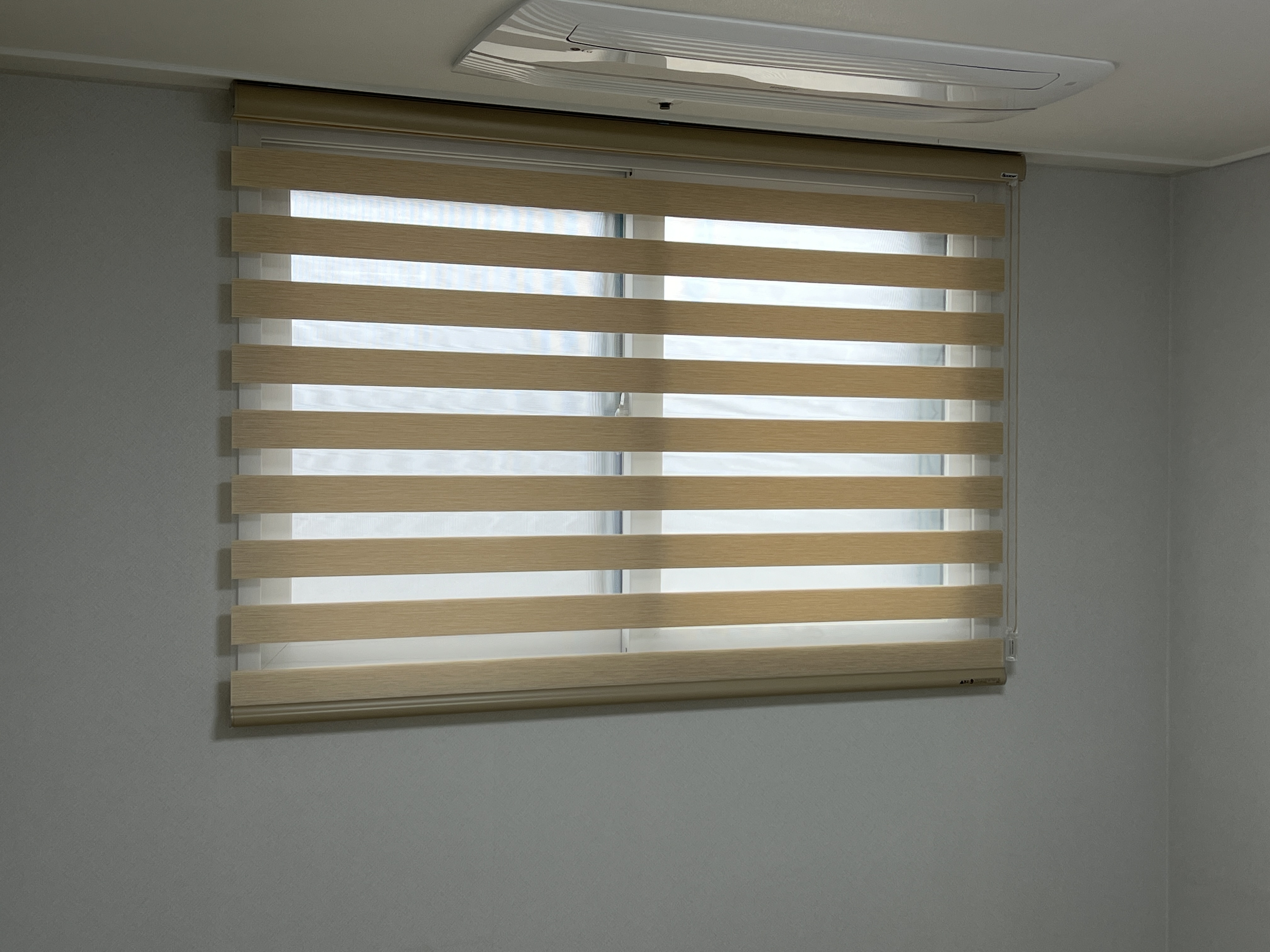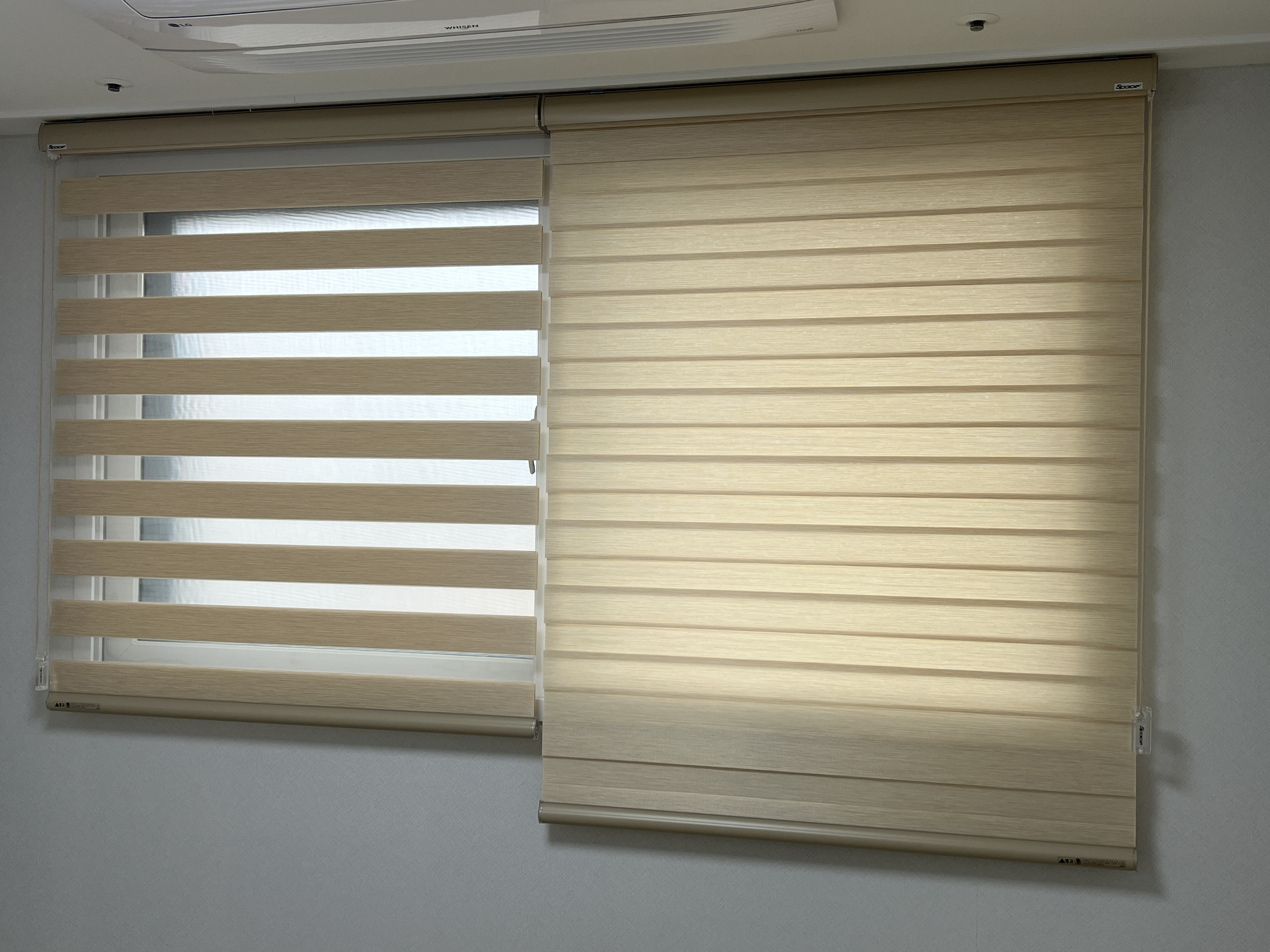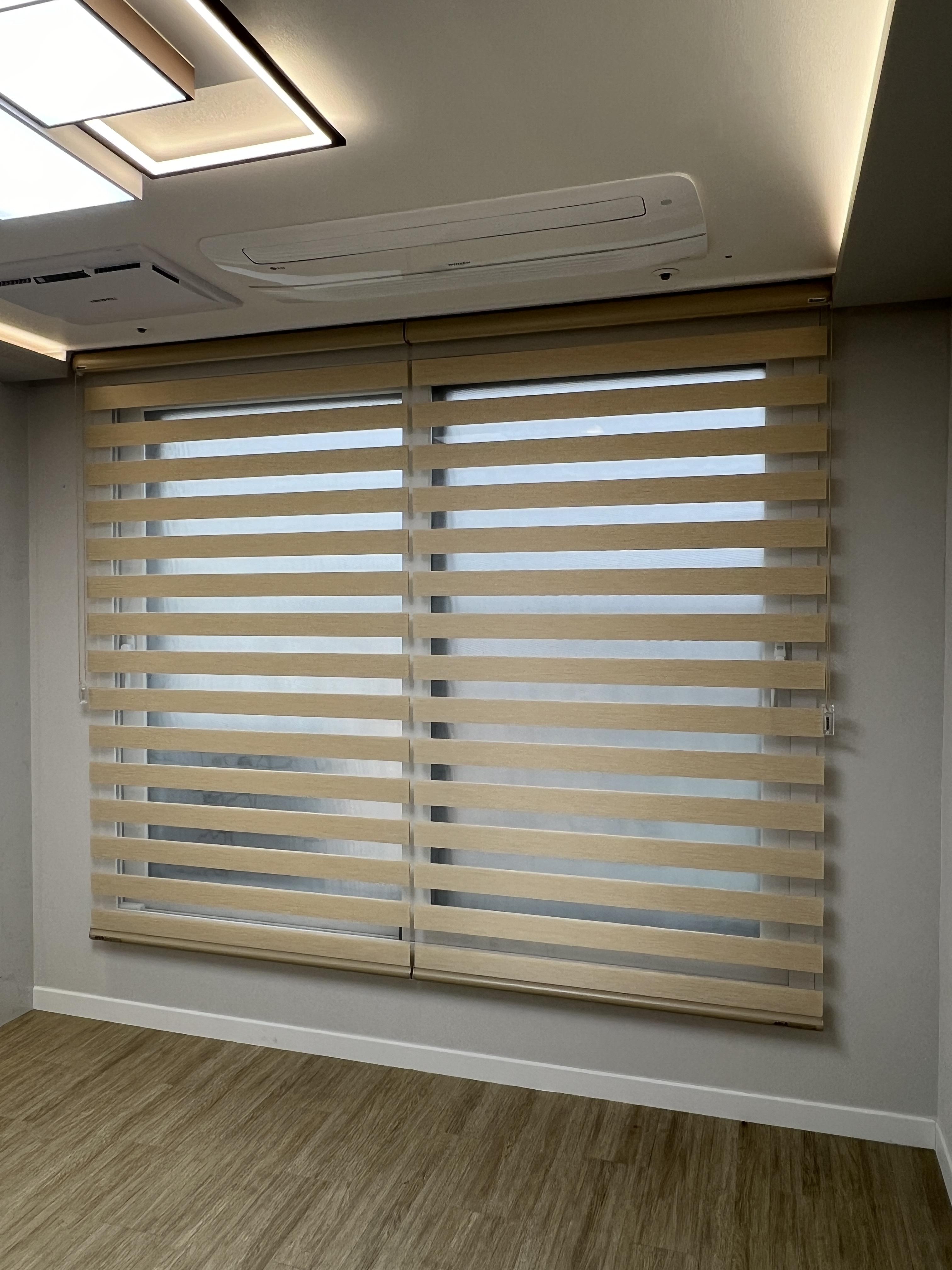 사진과 같은 콤비블라인드는 가벼운 먼지털이정도로 청소가 끝이 납니다. 모든 블라인드 통털어 가장 간편한 제품이라고 볼 수 있어요.
