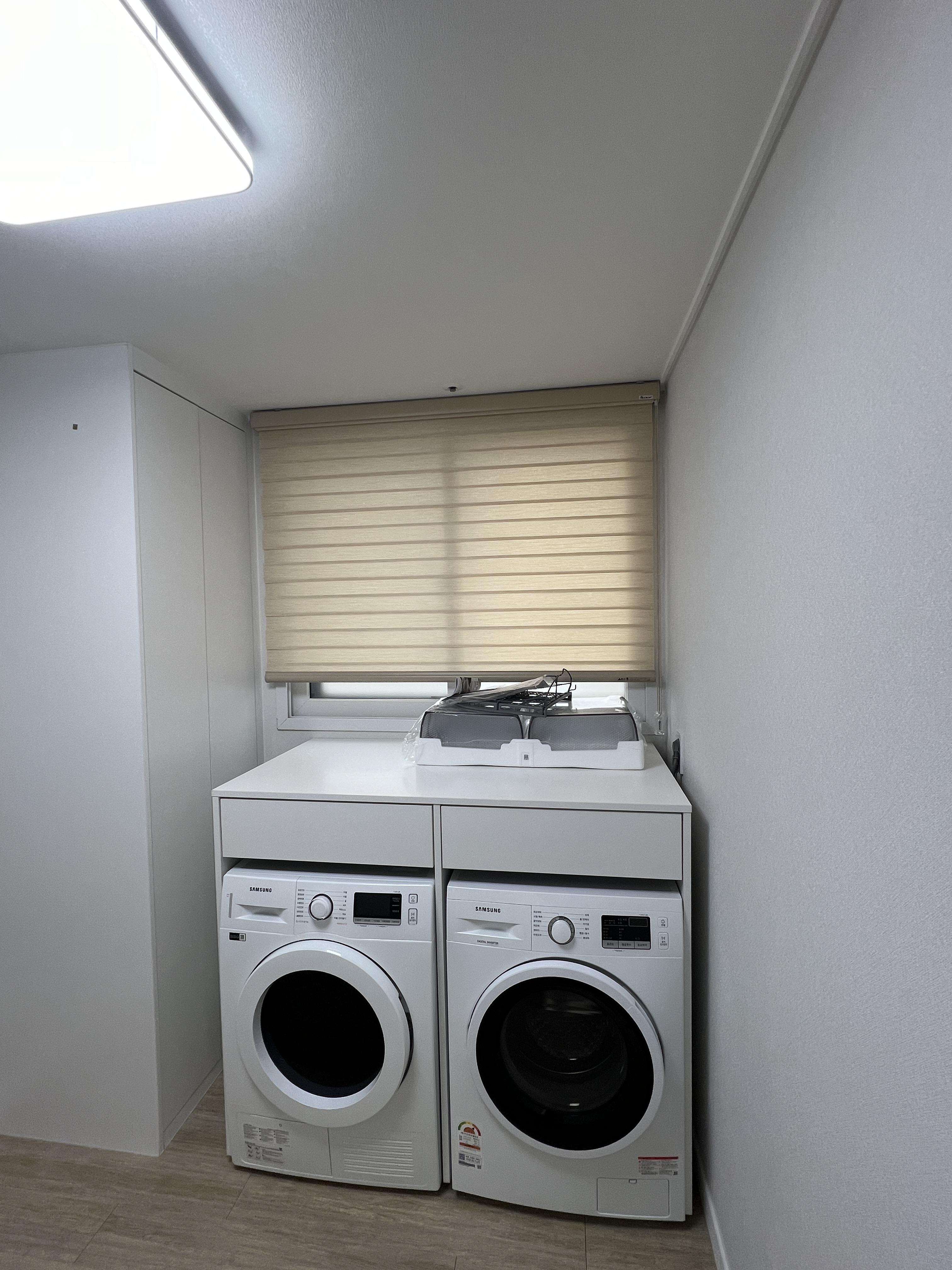 블라인드는 바로 이 세탁을 할 필요가 없다는 장점이 있습니다. 청소를 굳이 한다면 총채로 살살 털어주는 정도만 필요하고